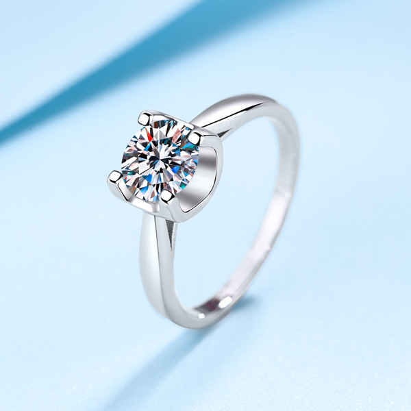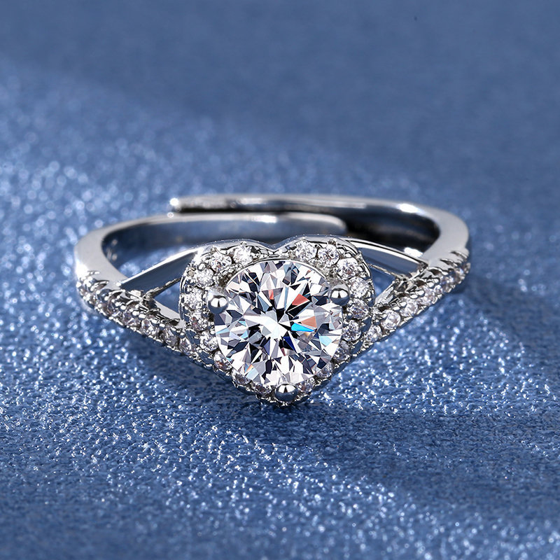 925 Silver Plate Female Mossanite Simple Love Ring
