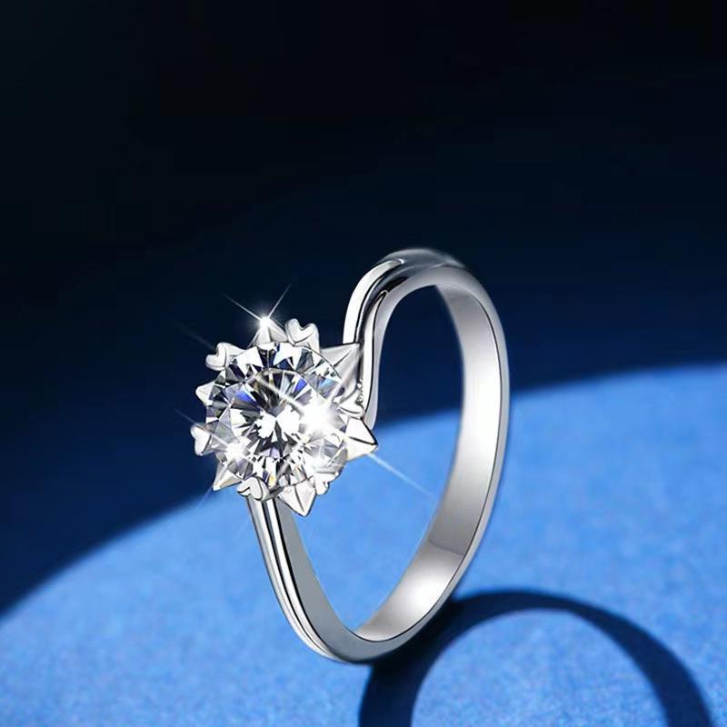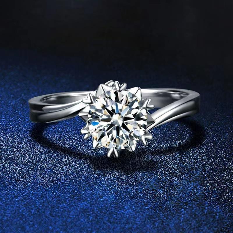 925 Silver Plate Snowflake Mossanite Stone Diamond Cut Ring