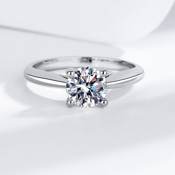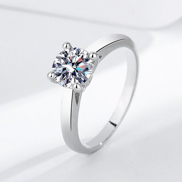 Classic Four Claw S925 Silver Plated Simulation Diamond Cut Woman Ring